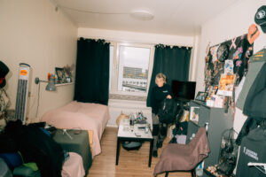 Så er det tilbage til herberget og slappe af i sengen. Jeg sidder altid og nørder med noget eller hækler. Det er ikke mit hjem det her, så jeg kan ikke få mig selv til at bruge køkkenet her på herberget. Hvis jeg skal have varm mad, er det, når jeg er hos mine børn. Så i dag bliver det bare til en rugbrødsmad, en gang yoghurt eller noget, man kan få på kop. Jeg går altid i seng klokken 22, men inden det, skal jeg lige æde nyheder.
